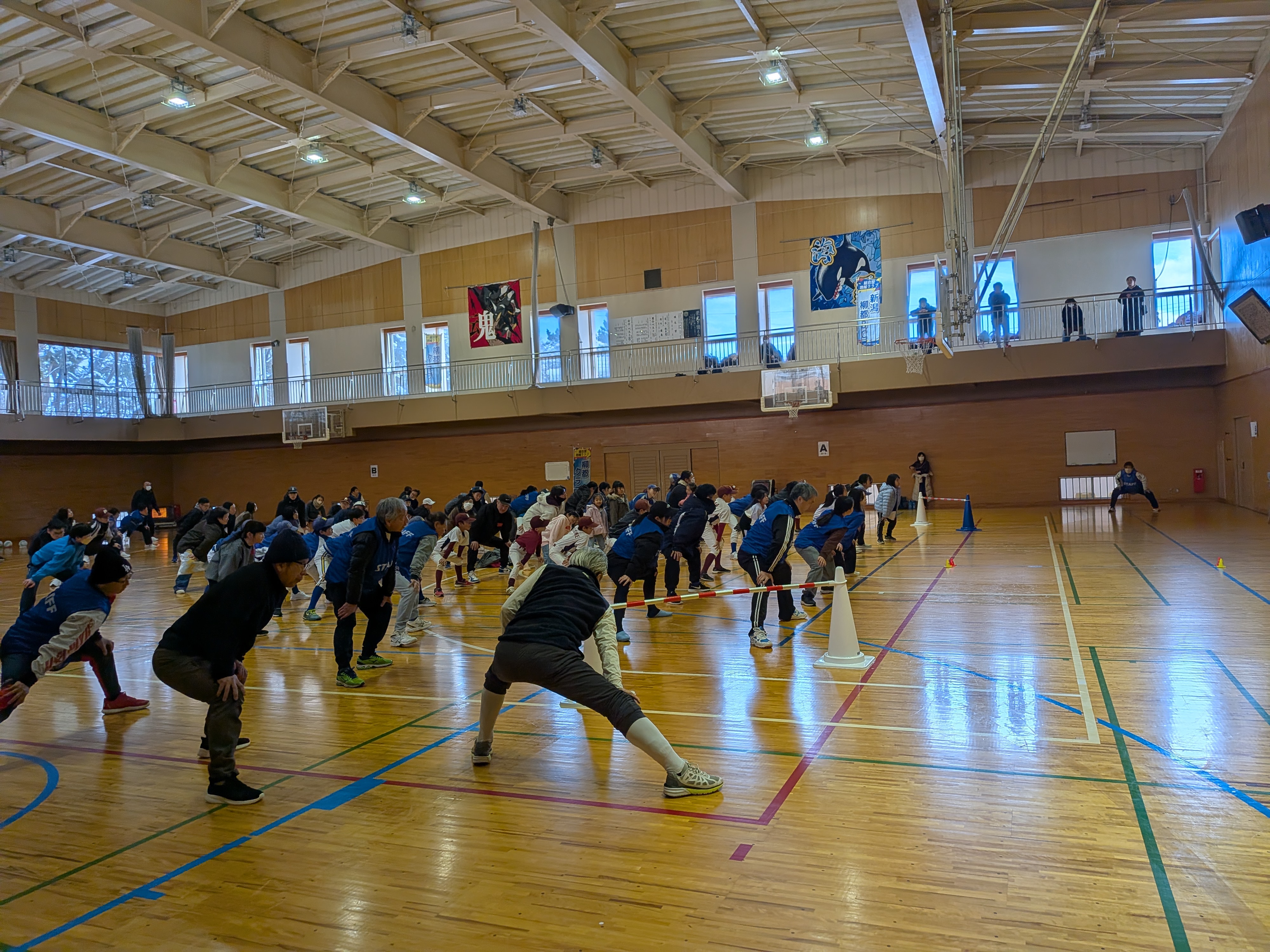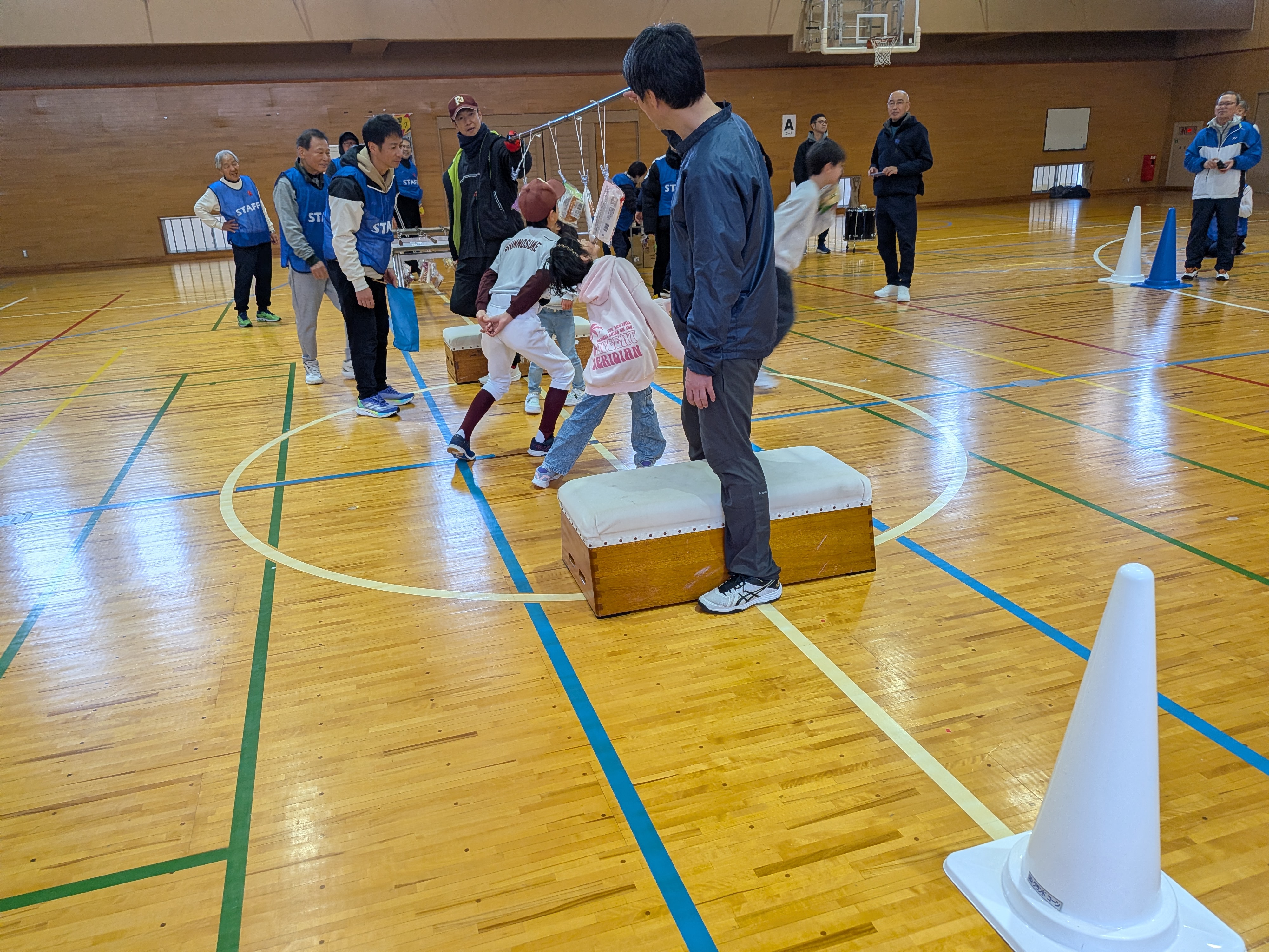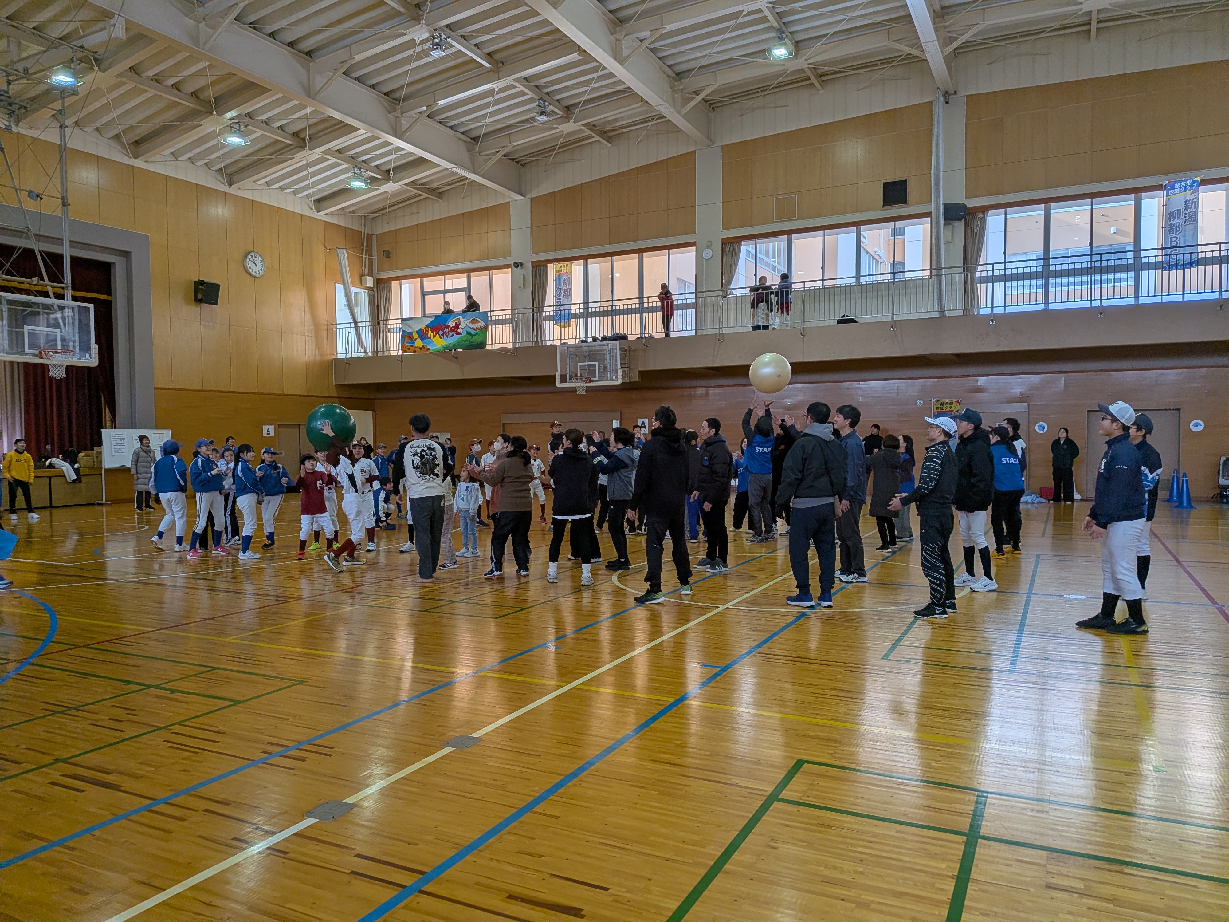 4歳から78歳までの120名余の参加、応援で盛大に親睦、交流、運動ができました。(ウォーミングアップ、パン食い競走、障がい物競走・リレー、バランスボール送り、全員リレー、さざえさん体操)来年度もバージョンアップして開催します!